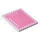 Keep track of all your important tasks with this stylish personalised notepad. The design features pink and white diagonal striped pattern as background plus blank space with six check circles and lines. The text is fully customisable.
