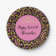 Girly Pink & Black Leopard Gold Glitter Paper Plate