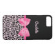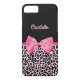 Girly Pink Black Leopard Print Cute Bow and Name Case-Mate iPhone Case