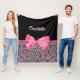 Girly Pink Black Leopard Print Cute Bow and Name Fleece Blanket