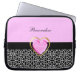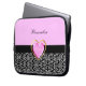 Girly Pink Black Princess Giraffe Print and Name Laptop Sleeve