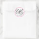 Girly Pink, Black Three Initials Monogram Wedding Classic Round Sticker
