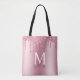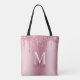 Girly Pink Blush Glitter Drips Monogram Name Tote Bag