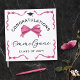 Girly graduation guestbook with a large pink bow above the graduate's name in a pretty black script. The corners are adorned with more illustrations of pink bows with long ribbons to form a frame for the cover and back of the square graduation party guestbook. A girly design for a girly graduate with custom text and without photo!