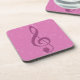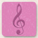 A simple music design featuring a large g-clef in rouge pink on a pink background with a subtle background of musical notes. The raised satin look of the clef is a printed effect. Perfect for the musician, music teacher, music student or music lover.