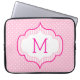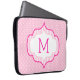 Girly Pink Custom Monogram Polka Dot Pattern Laptop Sleeve