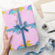 Girly Pink Cute Dinosaurs With Love Hearts Pattern Wrapping Paper