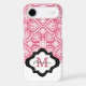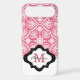 Girly Pink Damask Pattern Monogram Name Case-Mate iPhone Case