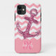 Girly Pink Faux Glitter Anchor Chevron Monogram Case-Mate iPhone Case