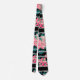 Girly Pink Floral & Silver Glitter Stripes Black Tie