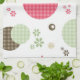 A girly mod circle pattern item with pretty pink, green, and brown gingham pattern circles and cute retro daisy flowers and shapes.
