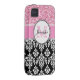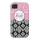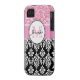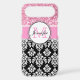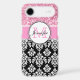 Girly, Pink, Glitter Black Damask Personalised Case-Mate iPhone Case