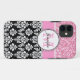 Girly, Pink, Glitter Black Damask Personalised Case-Mate iPhone Case