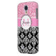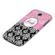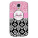 Girly, Pink, Glitter Black Damask Personalised Case-Mate Samsung Galaxy Case