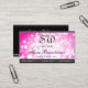 Make a lasting impression with this luxurious and quality business card design featuring a glamourous girly pink faux glitter with an elegant small silver decor border on a black background.