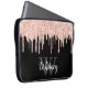 Girly Pink Glitter Drip Grey Monogram Laptop Sleeve