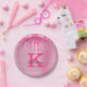 Girly Pink Glitter Drips Chic Glam Monogram Name Paper Plate