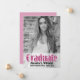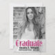 Personalise this Girly Pink Glitter Photo Graduate announcement card. This design features your picture as background, the word Graduate in pink glitter, name and date.