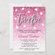 Modern simple girly 12th birthday party invitation. Design features glitter texture ombre (please note no real glitter wil be used, this is digital illustration) and trendy ''twelve'' in white colour and stars around. Party details are on the front of invitation in modern black font. To edit this design please click customise further.