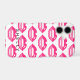 Girly pink glossy pixel lips pattern personalised iPhone 11 Case. Custom phone covers for him or her. Cool modern typography design with colourful print. Classy new case with stylish lettering. Unique Christmas or Birthday gift idea for men, women and kids. Apple smartphone accessories, version Eleven. Add your own name, monogram or quote. Also available for older Apple models like X, 8, 7 and Samsung Galaxy smartphones.