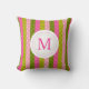 Girly Pink & Green Polka Dot Stripes Monogram Cushion