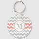 Girly Pink Grey Chevron Pattern with Monogram Key Ring