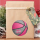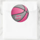 These cute personalised basketball stickers for girls feature a recolored team colours basketball with alternating pink and grey panels - personalise with player name in an "autograph" style font overlying the athlete's jersey number - by katz_d_zynes