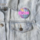 Girly pink, peach and aqua holographic iridescent monogram name and initial button. Your custom name and monogram are written in an elegant hand lettered script with a pink background. A perfect birthday or Christmas gift!