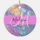 Girly Pink Holographic Iridescent Monogram Name Ceramic Ornament