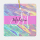 Girly pink, peach and aqua holographic iridescent monogram name and initial ceramic ornament. Your custom name and monogram are written in an elegant hand lettered script with a pink background. A perfect birthday or Christmas gift!