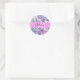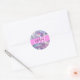 Girly pink, purple and aqua holographic iridescent monogram name and initial classic round sticker. Your custom name and monogram are written in an elegant hand lettered script with a pink background. A perfect birthday or Christmas gift!