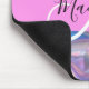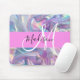 Girly pink, purple and aqua holographic iridescent monogram name and initial mouse pad. Your custom name and monogram are written in an elegant hand lettered script with a pink background. A perfect birthday or Christmas gift!