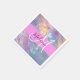 Girly peach, purple and aqua holographic iridescent monogram name and initial napkins. Your custom name and monogram are written in an elegant hand lettered script with a pink background. A perfect birthday or Christmas gift!