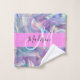 Girly pink, purple and aqua holographic iridescent monogram name and initial wash cloth. Your custom name and monogram are written in an elegant hand lettered script with a pink background. A perfect birthday or Christmas gift!
