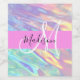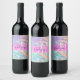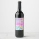 Girly Pink Holographic Iridescent Monogram Name Wine Label