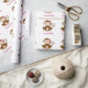Girly Pink Cartoon Monkey Birthday wrapping paper.