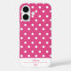 Add a touch of playful charm to your phone with this chic retro iPhone 16 case featuring a pink and white polka dot pattern, designed for those who love a fun and feminine style. Customise it with your first name in a beautiful script, and add your initials in a stylish monogram for an extra dose of sophistication. Also makes a great personalised gift for birthdays, Christmas, and all occasions.