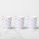 These volleyball themed birthday party paper cups feature multiple small stylised pink purple / blue / gradient with white volleyballs arranged in a simple drop pattern - text on a white circle graphic can be customised, currently the number 12 to represent a child's age encircled by the words, "Happy birthday" - by katz_d_zynes
