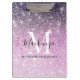 Girly Pink Purple Ombre Glitter Monogram Name Clipboard