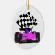 Girly Pink Race Car with Chequered Flag Ceramic Tree Decoration