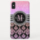 Girly pink rainbow glitter and black damask pattern. Personalise with your name and monogram design. Elke Clarke© Girly, elegant, glitter damask pattern design with black floral damask pattern. Add your name in a script font and monogram on a black label decorated with sparkling diamonds. Note: diamonds and glitter are a printed photo effect! The font colours can be customised by clicking on the "Customise it" button for the editing tools. Perfect monogrammed gift for a stylish girly girl.