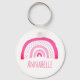 Bright, modern, girly pink rainbow keychain with personalized name text. Add your own name or text using the personalize option.