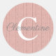 Girly Pink Rose Gold Glitter Stripes Monogram Classic Round Sticker