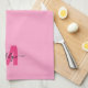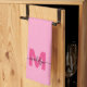 Personalised Custom Create Your Own Girly Bright Pink and Magenta Initial Name Monogram Kitchen Towel. Add a vibrant and feminine touch to your kitchen with this stylish monogrammed towel. Designed for a tri-fold style, it features a bright happy pink background, a bold magenta hot pink initial, and a flowing black script name, creating a playful and chic look. Perfect for everyday use or as a decorative accent, this towel makes a thoughtful and practical gift for housewarmings, birthdays, holidays, or even as a wedding gift when customised with a last name. Its girly charm also makes it a cute addition to a college dorm, apartment, or even a sorority house, combining fun and functionality effortlessly.