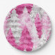 Girly Pink Silver Glam Christmas Trees Stripes Paper Plate