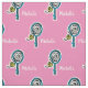 Girly pink tennis racket pattern fabric with custom name. Create your own outfit and home decor accessories for kids bedroom. Cute image of creative tennis racket and yarn ball. Fun DIY textile print for mum, daughter, friend, coach etc. Great for Birthday surprises and more.