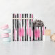 Girly Pink White Black Stripes Birthday Wrapping Paper