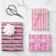 Girly Pink White Black Stripes Birthday Wrapping Paper Sheet