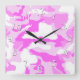 Girly Pink White Camouflage Background Artwork Square Wall Clock