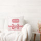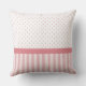 A girly soft pink stripes square throw pillow with cute pink and white polka dots and a stylish light pink polka dot ribbon tied into a feminine bow. Personalise by adding the name of your special young lady. Flat printed picture of a bow, NOT an actual ribbon.